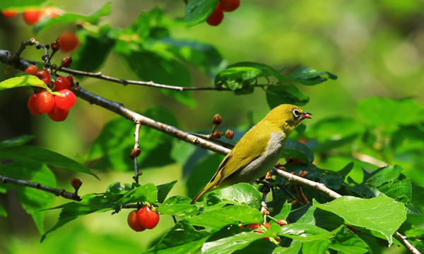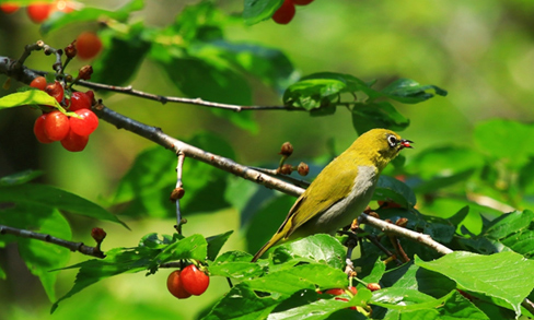 暮春时节,樱桃次第成熟,清甜果香弥漫山野。在云南省腾冲市和顺镇,灵动的绣眼鸟化身春日“尝鲜员”,穿梭林间、轻巧悬停,啄食饱满红润的樱桃,灵动可爱的画面勾勒出治愈感满满的暮春野趣。