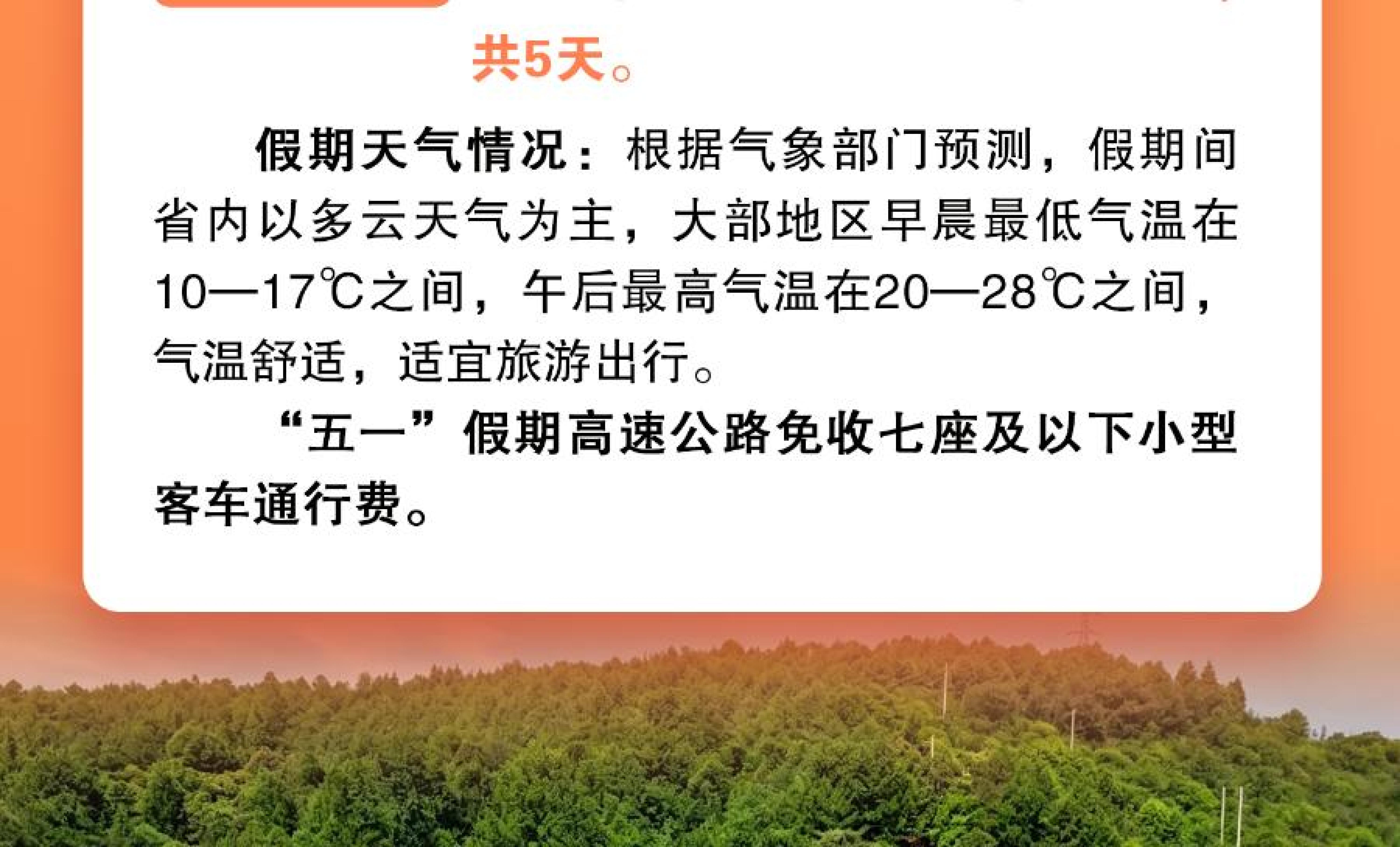 云南网讯(记者期俊军彭锡)日前,云南省交通运输厅发布了2026年五一假期云南省公路网出行服务指南。5月1日-5月5日,高速公路免收七座及以下小型客车通行费。假期怎么出行更顺畅?这份指南给你答案。