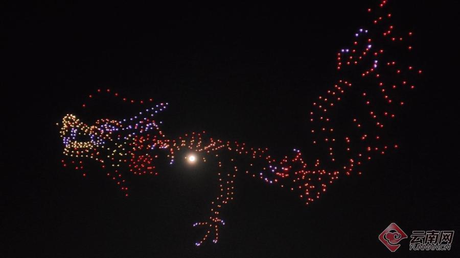 2月24日晚,大理市2024年元宵节无人机表演秀活动在大理全民健身中心广场热烈举行。