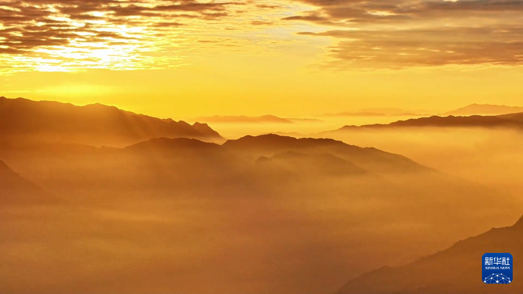 在位于云南省昭通市巧家县的云南药山国家级自然保护区,冬日黎明时分,天际线被暖橙色点亮,旭日东升时,万丈光芒倾泻而下,为翻涌的云海镶上金边。而远处的山脉于云海中时隐时现、层层叠叠。
