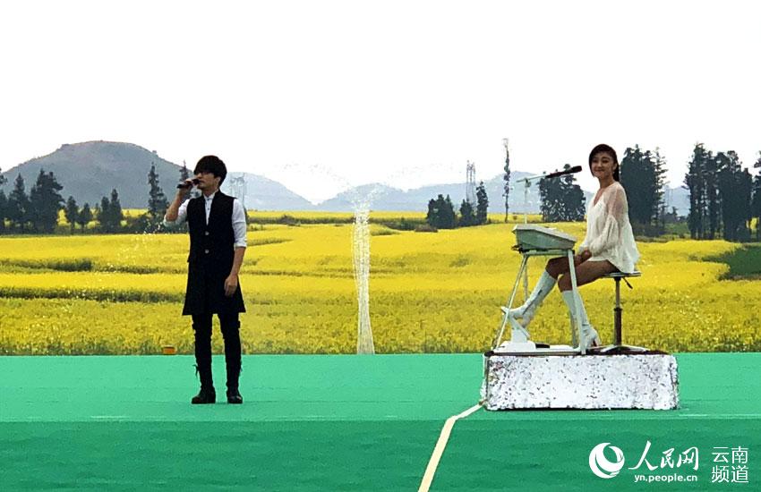 云南罗平油菜花节群星演唱会举行,玖月奇迹等明星献唱。