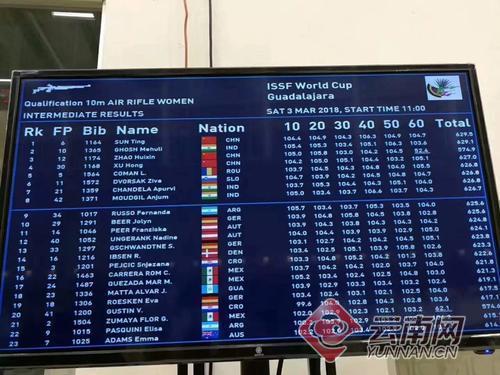 云南网讯(记者 黄翘楚)正在墨西哥进行的2018射击世界杯上传来捷报,3月3日凌晨,临沧市耿马籍射击运动员孙婷在2018年墨西哥射击世界杯女子10米气步枪项目小组赛中,以60发子弹打出629.5环的成绩创世界记录,将继续在后续比赛中向金牌发起冲击。