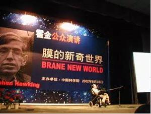 在杭州的几天,霍金还游览了淡妆浓抹总相宜的西湖。之后,霍金又到北京,参加北京国际弦理论会议。8月18日,霍金在北京国际会议中心做了科学报告,打出了鲜明的标题:《膜的新奇世界》。当时,两千人的会场座无虚席。