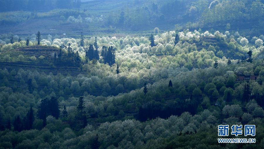 这是云南省红河哈尼族彝族自治州个旧市鸡街镇毕业红村加级寨的梨花谷一景(3月19日摄)。近期,云南多地的梨花相继开放。梨花、村庄、民居、游人相映成趣,构成了一幅幅美丽的“大地春歌”图。新华社记者 蔺以光 摄