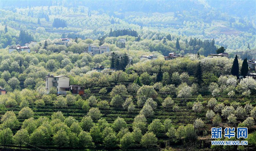 这是云南省红河哈尼族彝族自治州个旧市鸡街镇毕业红村加级寨的梨花谷一景(3月19日摄)。近期以来,云南多地的梨花相继开放。梨花、村庄、民居、游人相映成趣,构成了一幅幅美丽的“大地春歌”图。新华社记者 蔺以光 摄