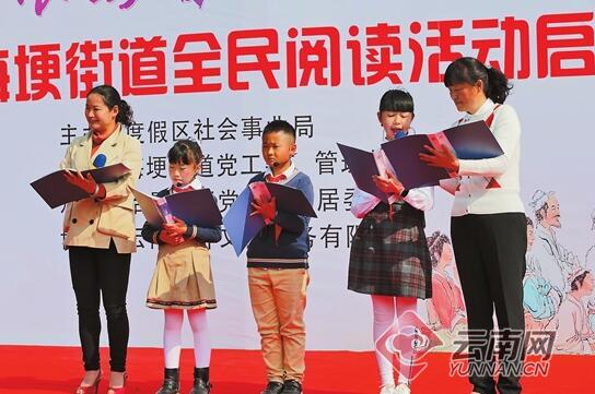 24日,“墨浓书香,阅览怡景”全民阅读活动在昆明滇池国家旅游度假区内的袁晓岑美术馆举行。来自度假区海埂街道社区的市民代表以家庭为单位,朗诵美文、推荐好书并畅谈读书心得。