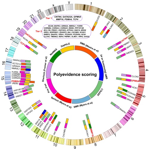 云南网讯 (记者 张蕊)近日,中国科学院昆明动物研究所罗雄剑课题组通过利用不同的分析方法与策略,首次在基因组范围内系统性地筛选出精神分裂症可能的致病基因。这6个最有可能的精神分裂症致病基因为CNTN4、GATAD2A、GPM6A、MMP16、PSMA4和TCF4,致病基因的发现为深入解析复杂精神疾病的遗传机制提供了新思路。