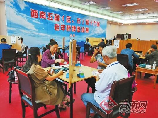 昨日,西南五省(区、市)第十九届老年桥牌邀请赛在昆明海埂体育训练基地举行,共有27个队的132名选手在此切磋牌技、加强交流。