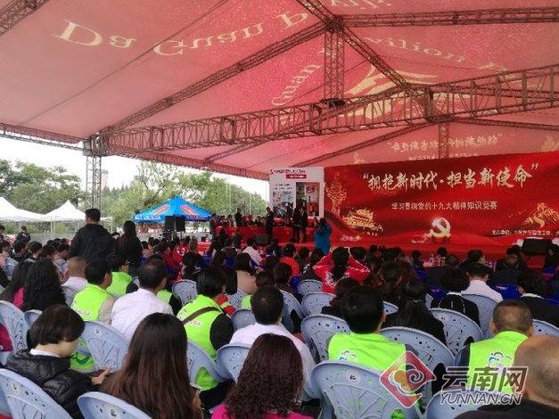 云南网讯(记者 李竞立)4月28日,一场名为“拥抱新时代·担当新使命”学习贯彻十九大精神知识竞赛活动,在昆明市大观公园九夏芙蓉广场举行,来自周边机关、企事业单位和学校的比赛选手和干部职工以及游客群众进行现场竞赛互动,掀起了学习党的十九大精神的阵阵热潮。