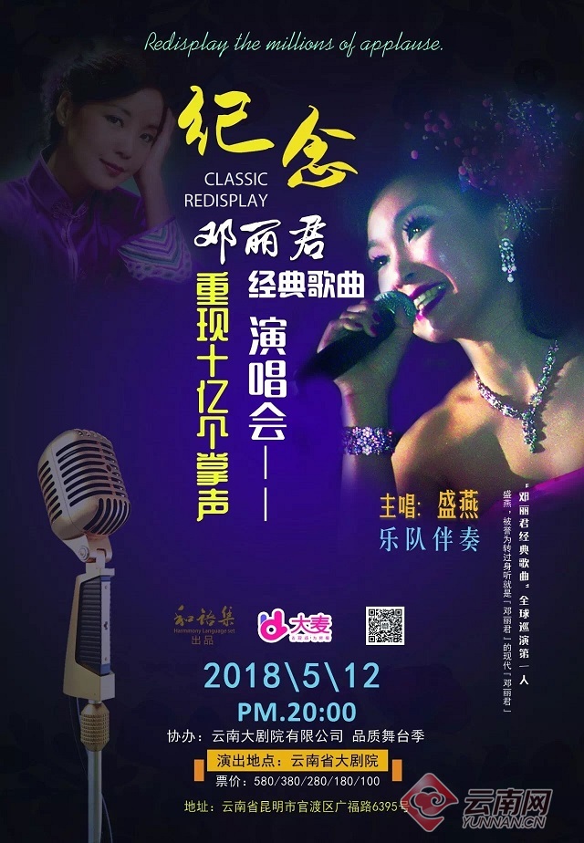 云南网讯(记者 李星佺)5月12日(周六)晚8点,纪念邓丽君《重现十亿个掌声》演唱会盛燕专场将在昆明云南大剧院举行。被誉为“最具神韵”的邓丽君模仿者盛燕将登台演唱包括《甜蜜蜜》《何日君再来》《又见炊烟》等在内的20首经典曲目。