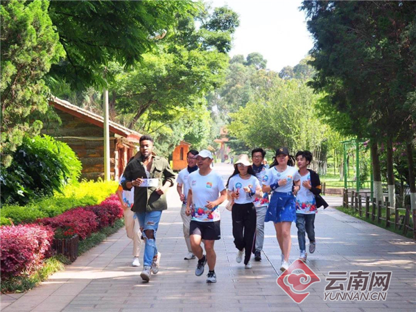 著名探险家金飞豹从云南民族村出发,带领“无问·芳华电影游”的体验官们,开启了全球体验官游云南之“mini马拉松”主题体验游。这段mini马拉松接近2公里,体验官们身穿统一服饰,与金飞豹老师小跑前行,一起感受运动和撞线的快乐。