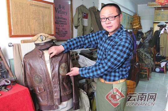 “这应该是我目前最牛的一件藏品,得来全属机缘。”龚康毅很是得意。随即,他小心翼翼地将军服“穿”在一个塑料模特身上,系上皮带,又为“陈纳德”戴上军帽。军服左右上衣口袋上方胸前,分别佩戴着美国空军和飞虎队的徽章。