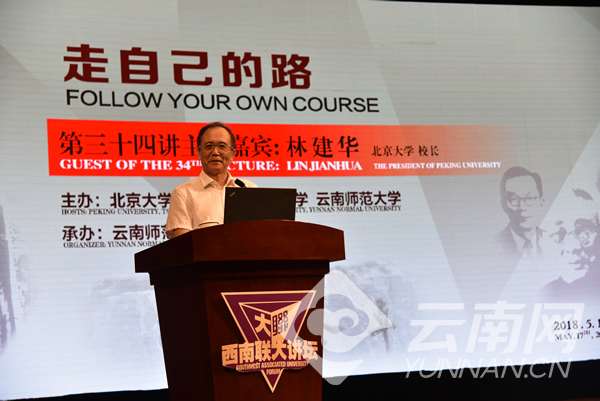 云南网讯(记者 耿颖)“一所优秀大学最重要的标准在于:是否聚集了最优秀的老师和学生,是否为他们提供了良好的发展环境,进一步帮助他们成长,促进他们潜能的开发……”5月17日下午,北京大学校长林建华以“走自己的路”为主题在云南师范大学呈贡校区开讲,作为西南联大讲坛第三十四讲的嘉宾,他为大家阐述了大学管理方面的诸多思考,分享了北京大学综合改革的相关经验等。