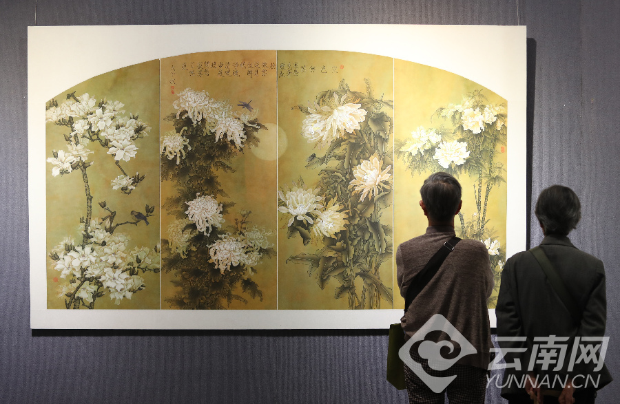 在昆明市博物馆,《杨丽萍工笔画展》通过“一花一世界”为观众呈现自然之美。[云南网记者 杨峥 摄影报道]