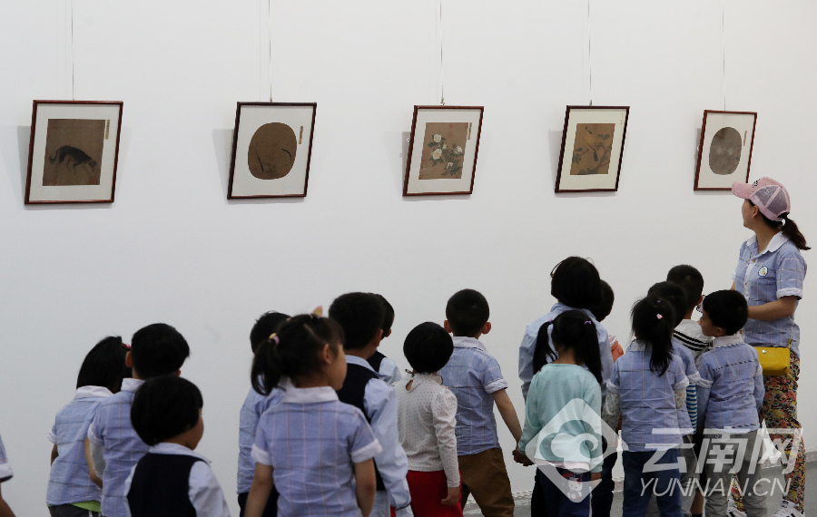 在昆明市博物馆,高仿真精品宋画作品展让孩子们接受了一次中国传统绘画艺术的熏陶。[云南网记者 杨峥 摄影报道]