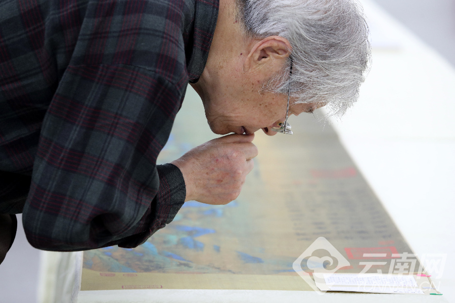 高仿真精品宋画作品展在昆明市博物馆开展,《江山万里图 》、《清明上河图》、《长江万里图》等长幅巨作吸引众多市民前来参观。[云南网记者 杨峥 摄影报道]