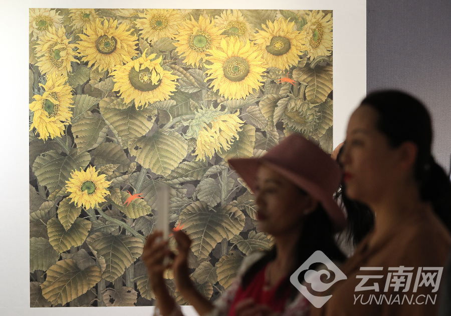 在昆明市博物馆,《杨丽萍工笔画展》通过“一花一世界”为观众呈现自然之美。[云南网记者 杨峥 摄影报道]