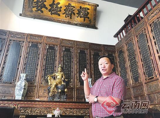 馆主陈光云介绍其镇馆之宝《孝经》萧墙