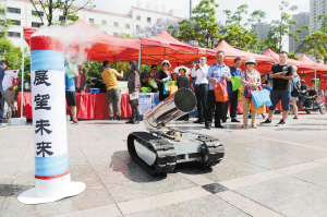 环保空气礼炮和全地形机器人吸引市民眼球。 记者杜文蕾摄
