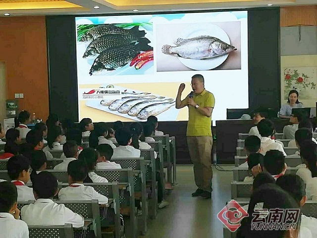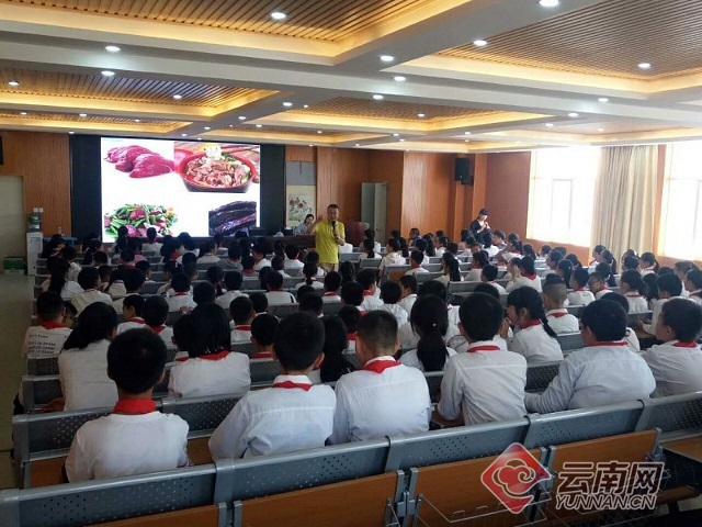 5月22日下午,昆医附二院院营养科孙海嵩主任带领营养科老师和10余名医学生志愿者走进五华区虹山小学给160余名六年级小学生开展了营养知识宣讲。孙老师用通俗易懂的语言和丰富多彩的照片给学生们宣传了应该如何吃?怎样健康吃?怎样改变不良饮食习惯和生活方式的医学知识。
