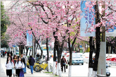 代表街道:教场中路 其他赏花地:翠湖、油管桥盘龙江畔、宝海公园、滇池路等