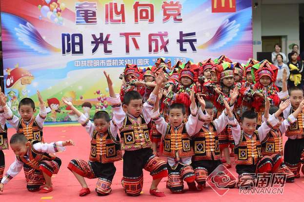 据昆明市委机关幼儿园园长陈旭红介绍,今年是中国共产党成立97周年,为了表达幼儿祝福党的生日,赞美幸福生活的美好心声。幼儿园希望通过庆祝六一系列活动,增强师生们的爱国主义情感,同时让孩子们在积极地参与中体验合作与交往的快乐。