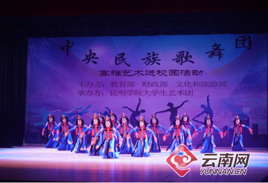 云南网讯(记者 贺凯 通讯员 廖新元)近日,2018年“高雅艺术进校园”之中央民族歌舞团专场演出在昆明学院学生会堂隆重上演,昆明学院师生共1200余人共同欣赏了这场极具民族特色的专场演出。