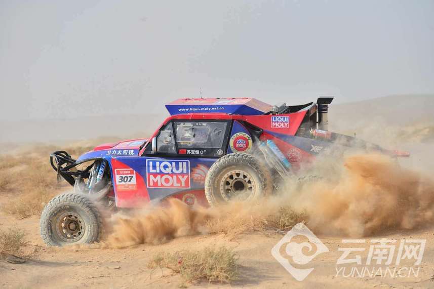 可喜的是力魔雄风车队苏宝恒/苗晋华,背负被罚时后,虽是在赛道中曾误入歧途,汽油告紧,好在冲过终点,也顺利完成赛段。重返赛场的小将李锦明/吉亚图,也遭遇了不测,在翻越沙山时不幸赛车倾覆,连续翻滚3圈后车头落地跌落沙山下,险情出现后车组赛员被赛会直升机救往哈密市医院,目前身体无其它大碍,需在医院观察一夜。