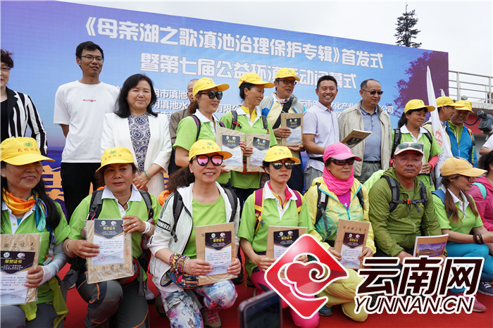 活动现场,主办方为全程参与环滇的人颁发“环滇勇士”证书以及赠送《母亲湖之歌滇池治理保护专辑》。