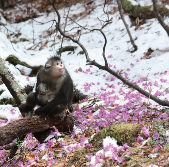 滇金丝猴会在每年的二月到六月出生,这个季节也是每年食物开始丰富起来的季节,以保障抚育下一代的营养需求。