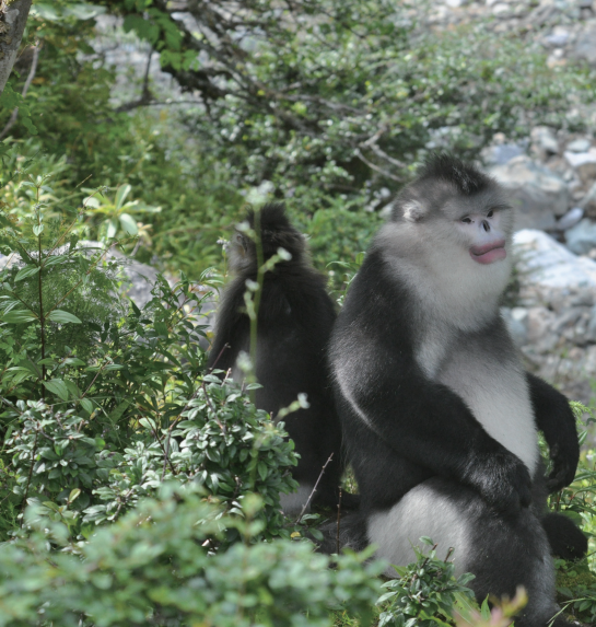 滇金丝猴并不像其他猴子一样身形苗条,这是为什么呢?答案与它们的生态习性有关。白马雪山全年可供滇金丝猴食用的植物多达42科105种——这是距今有限的生境中调查结果。但它们主要以松萝、地衣、阔叶树的芽叶以及竹笋等为食。