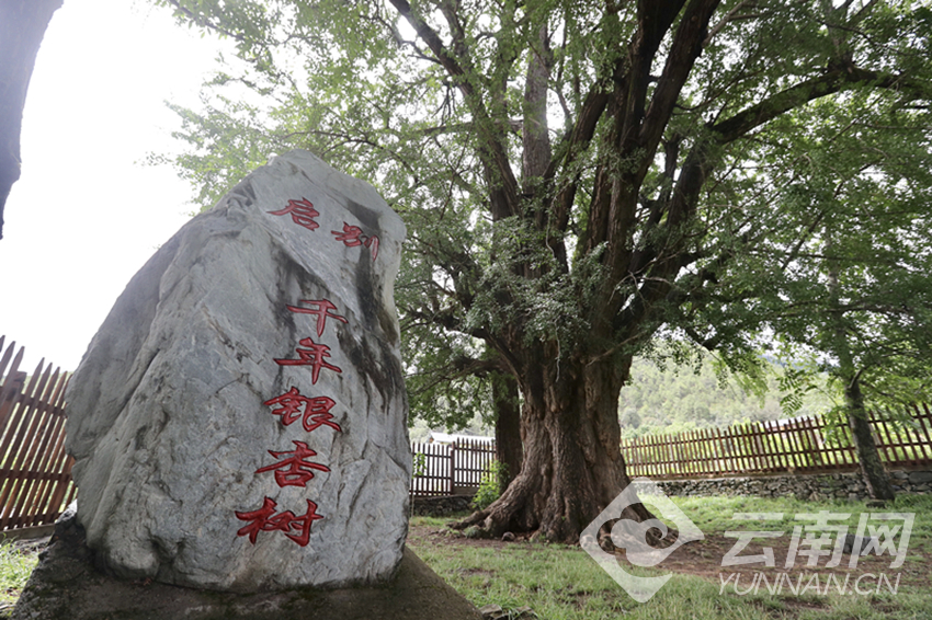 在距离白马雪山国家级自然保护区直线距离3公里多的维西县塔城镇启别村,采访组见到了一棵千年银杏树。