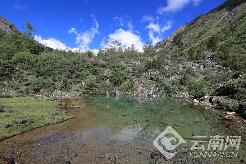 白马雪山下的小湖清澈见底。记者 陈飞 摄