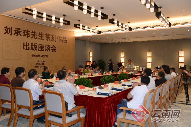 云南网讯(记者 黎鸿凯)6月21日,刘承玮篆刻作品出版座谈会在昆明举行,来自中国文联、云南省政协文史委员会、云南省文联、云南省博物馆、云南民族博物馆、云南省书法家协会、云南省美术书法研究院等文化学者和业界人士首次对刘承玮篆刻作品进行深入的评价和研讨。