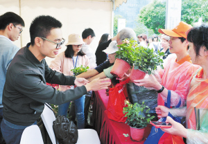 昨日,盘龙区在昆明广场开展“个十百千万、鲜花靓盘龙”工程之一的“文明之花、扮靓盘龙”文明行为倡导活动。通过政府组织、企业捐赠的形式,活动共获得捐赠鲜花8万余盆,这些鲜花将赠送给参加文明行为倡导活动的市民。