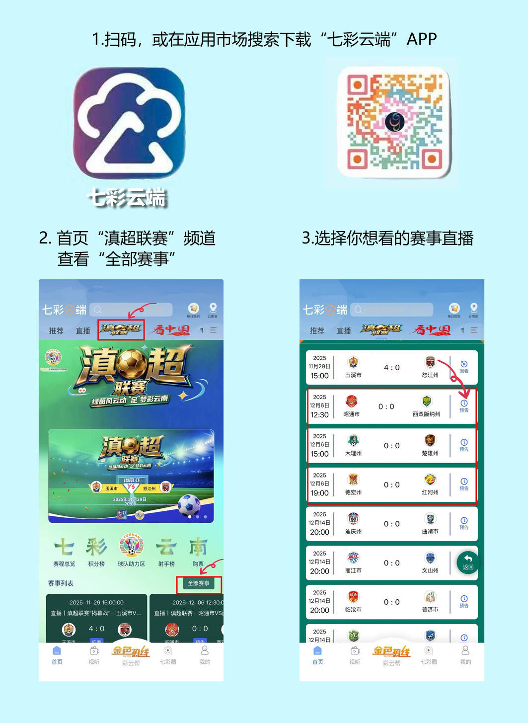 “七彩云端”客户端【“滇超联赛”频道】已上线,128场对决全程直播!这里不只是观赛平台,更是云南球迷的互动大本营,速来集结,让热爱沸腾!
