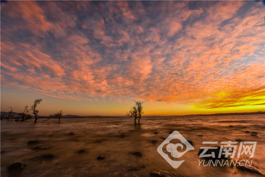 日落彩霞满滇池