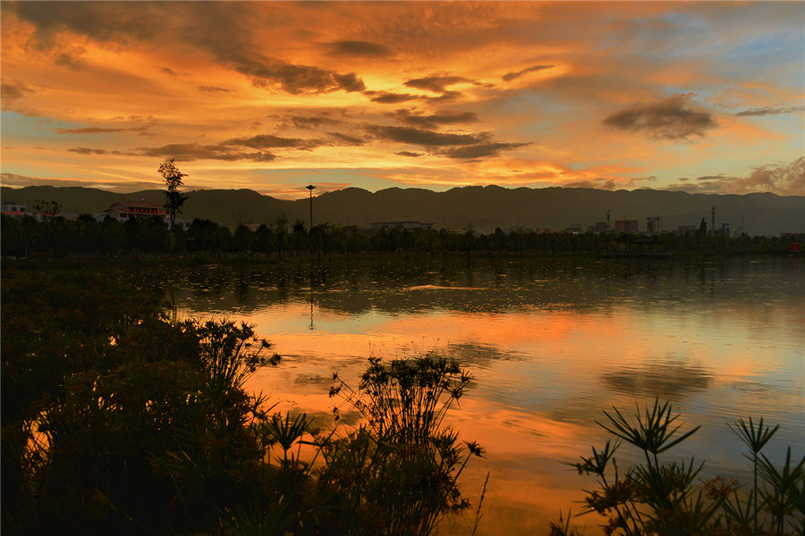 昌宁茶韵味公园晚霞如油画