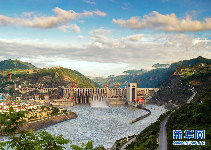 金沙江上巍然挺立的向家坝水电站。新华网发(何光云摄)