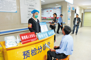该医院现已创建为无烟医院,全院每一个科室轮流排班担任劝导员,昨日排到了护理部主任邱红艳。除劝导就诊病人不要吸烟外,同时也向病人提供咨询、导医等服务。