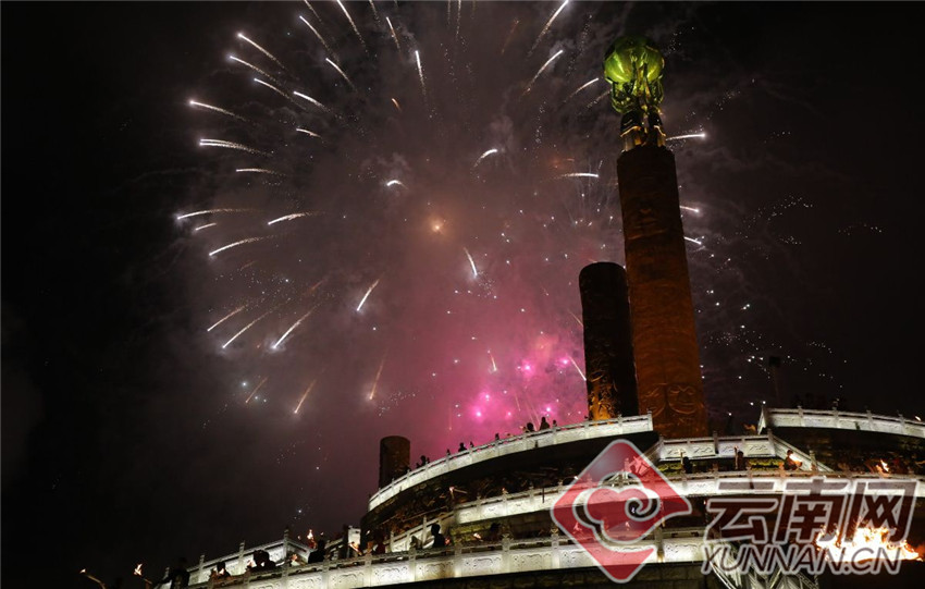 云南楚雄举行“祭火大典” 万人狂欢2018彝族火把节