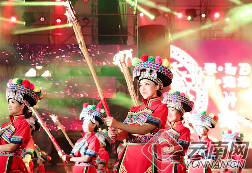 云南楚雄举行“祭火大典” 万人狂欢2018彝族火把节