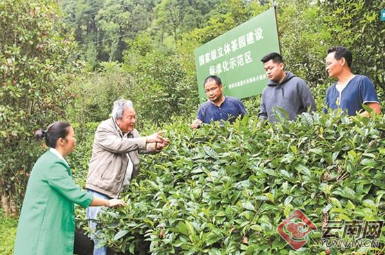 近日,记者在距离普洱市区约10公里的“立体生态茶园”看到,茶树的种植及修剪都迥异于传统手法——采取多品种组合种植、修剪出一个平面及一个斜面共两个采摘面。80多岁的老茶人肖时英告诉记者:“别看整个茶园面积仅110亩,里面种植的茶树品种多达27个,多品种组合种植,这是全国首创。”