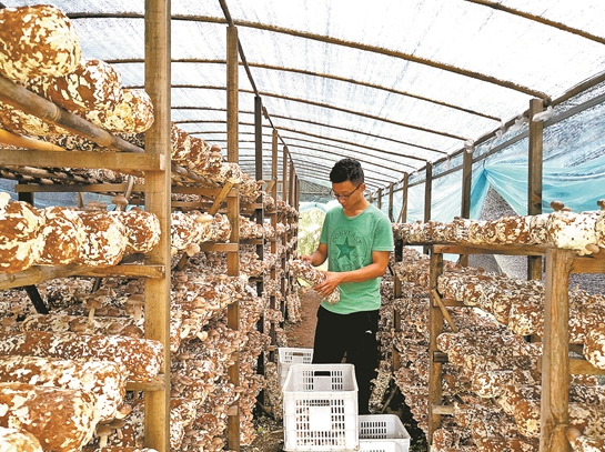 连日来,昌宁县漭水镇翠华社区大学生村官杨永发都在香菇大棚里忙碌,收获着他和贫困户一起种植的第一季香菇。