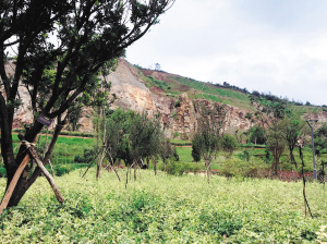 清水-黄土坡片区方圆10平方公里,山峦起伏。这里的地质富含灰岩和白云岩,它们是运用广泛的建筑材料。80年代以后,这儿成了昆明最大的沙石料场。最多的时候,有采石场90余家、砖瓦厂20余家。30年来掠夺式的开采,造成了森林覆盖面积急剧减少、土层稀薄、土壤贫瘠。到处是断崖残壁,深挖采坑密布,最深处高差达100多米。由于地下隔水层被破坏,生态涵养功能减弱,水土流失严重。周边居民和牲畜饮水都很困难。