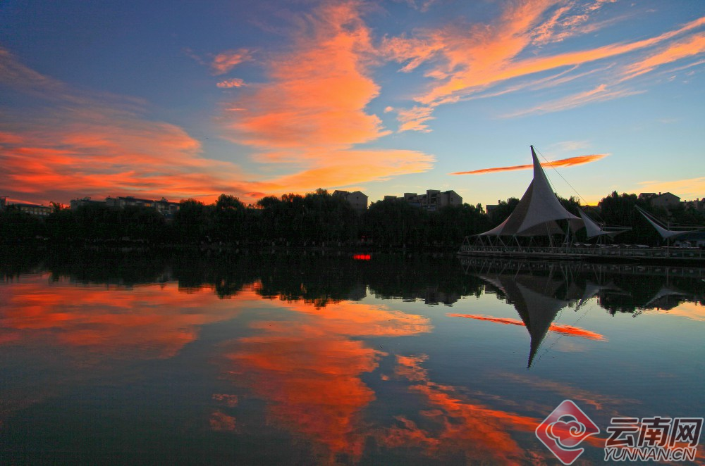 朝霞映湖