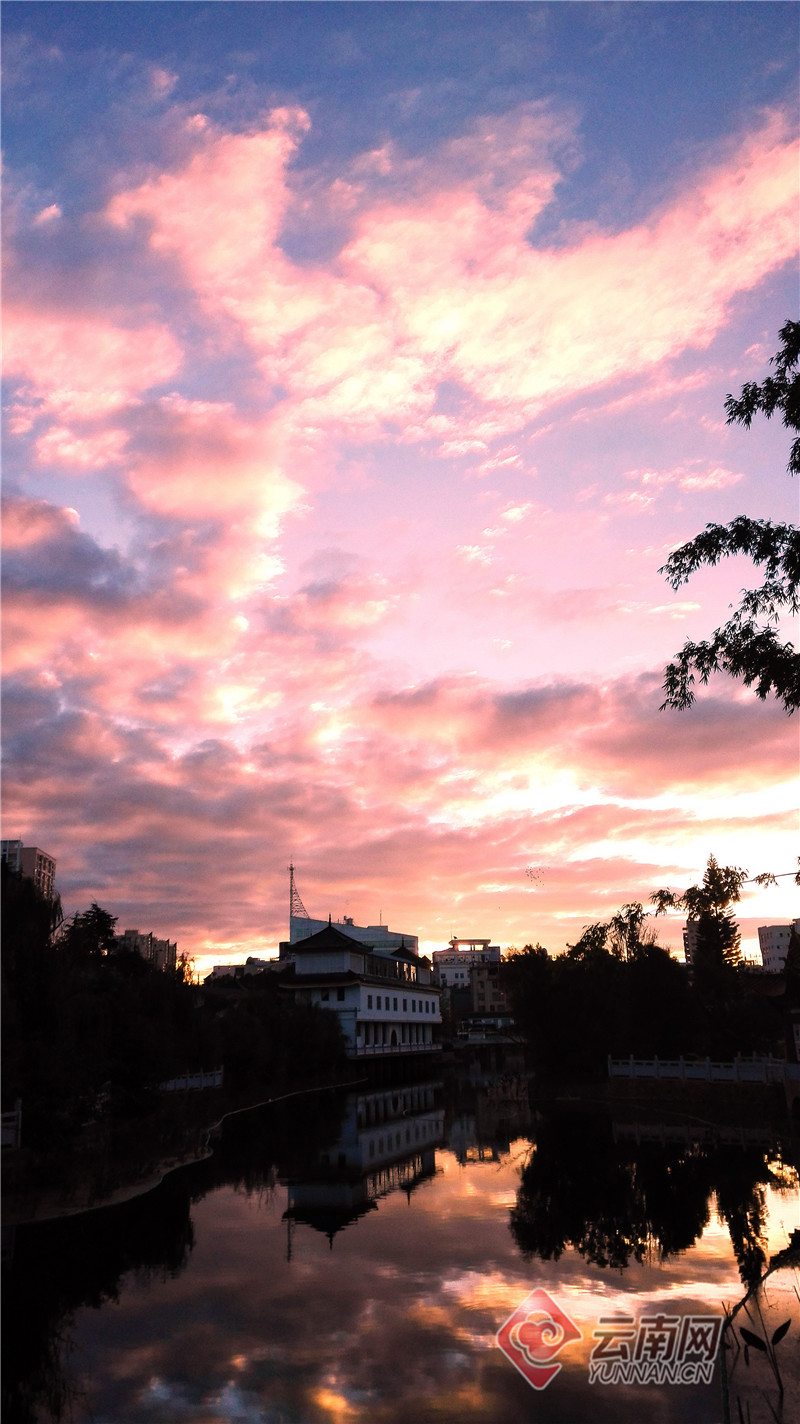 【#最美云南云#投稿作品展示:朝霞映龙江】 作者:胡先亮 。投稿作品:《朝霞映龙江》组图,2018年9月25日摄于楚雄市龙江公园。