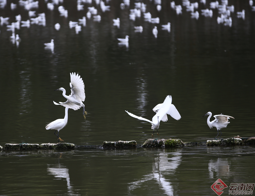 【高清组图】老树、红嘴鸥与白鹭 昆明大观河畔美景多