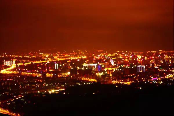 沟壑凹地中五彩缤纷的片片农田、处处村庄