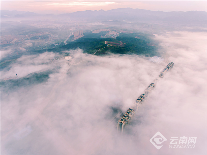 清晨,雨后的安宁市太平新城山岚染黛、云蒸霞。